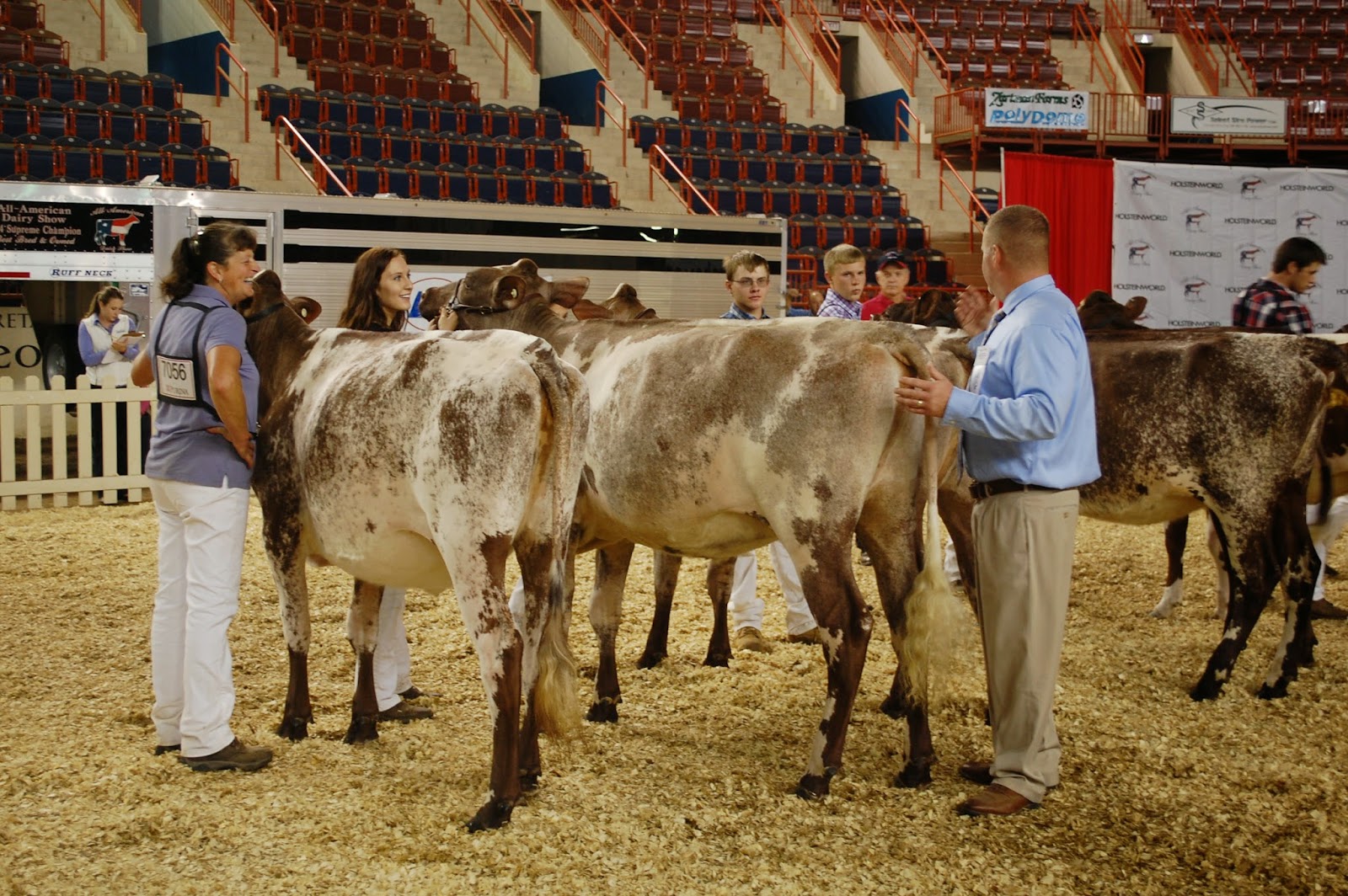 Judge Sean Johnson of Glenville, PA placed an outstanding group of Milking Shorthorn heifers during today's heifer show. Junior Champion honors went to the fancy fall calf that topped the Spring for Colors sale for Milking Shorthorns. Owned by Vail, Hillpoint and Borba, Hard Core Premium Fire Maid EXP was hard to beat today. Reserve Junior Champion honors went to the first-place Spring Yearling, Spungold-R Poppys Pearl ET owned by Bieron & Bendig. Honorable Mention honors went to the very dairy first-place spring calf owned by Halpin Farms, Halpins Ellanie, also the best bred and owned heifer winner. Following are some shots from today's show. The show completes tomorrow with the cows. Check out the blog later this week for champion results and the Holiday Milking Shorthorn Journal for full coverage of the show.